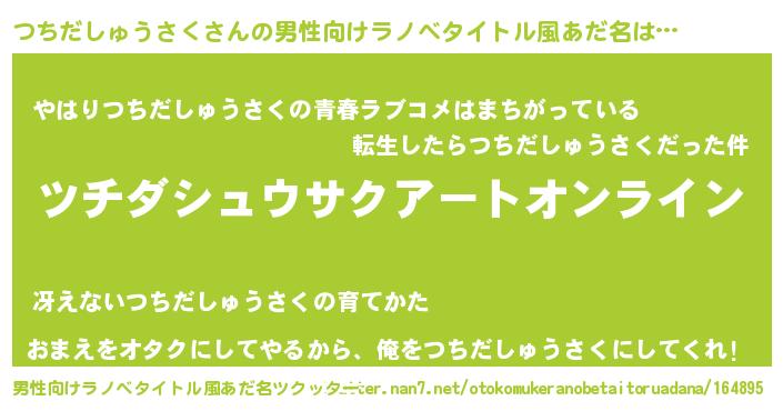 | 女子向けラノベタイトル風あだ名 | 『つちだしゅうさく姫と円卓の騎士』 |