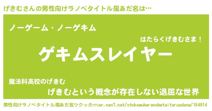 | ヘコむあだ名 | 『げきむ(笑)』『げきにー』 |