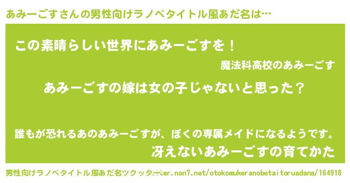 | 欧米人風あだ名 | 『ウサインあみーごす』 |