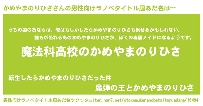 かめやまのりひささんの男性向けラノベタイトル風あだ名をツクッター!