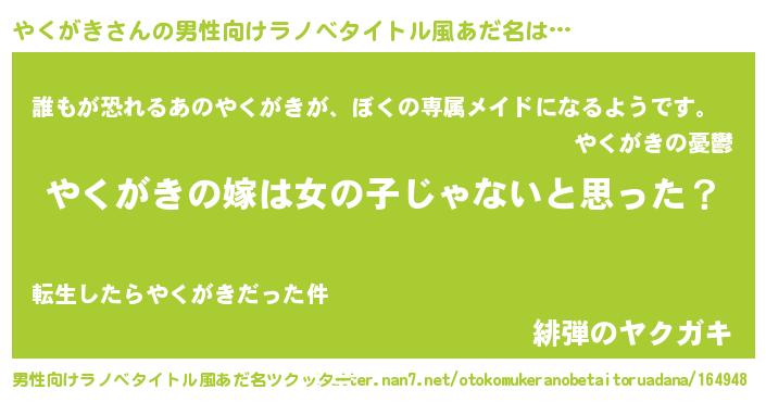 | 女子向けラノベタイトル風あだ名 | 『やくがき様がみてる』 |