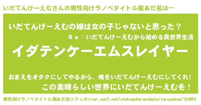 | 胡散臭い通販商品みたいなあだ名 | 『信頼と実績のペンダント…その名も「いだてんけーえむ」』 |