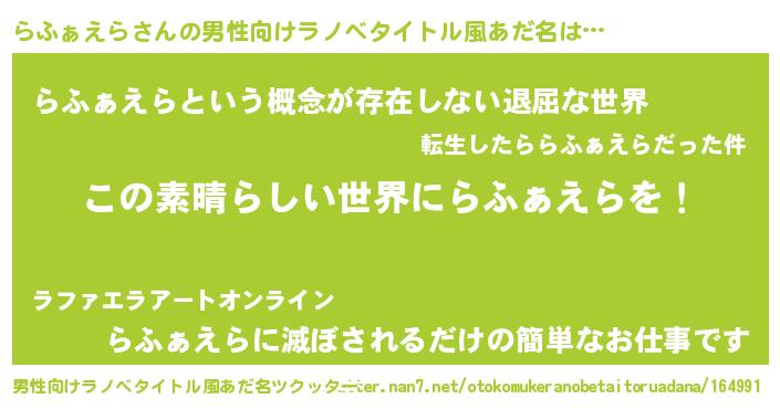 | 意味不明あだ名 | 『住所不定無職らふぁえら(79歳)』 |