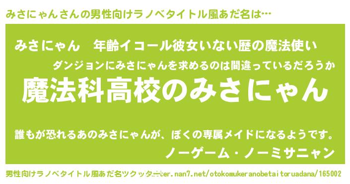 | ヒーロー風カッコイイあだ名 | 『ウルトラ戦士ミサニャン』 |