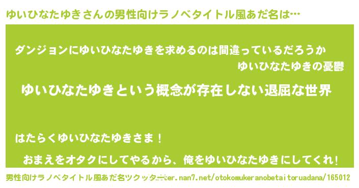 | 胡散臭い通販商品みたいなあだ名 | 『来世でも幸せになれる健康食品…その名も「ゆいひなたゆき」』 |