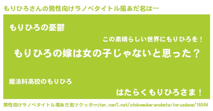 もりひろさんの男性向けラノベタイトル風あだ名をツクッター!