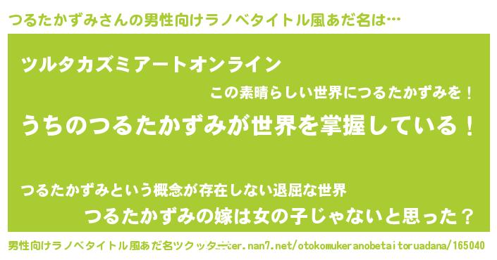 | 意味不明あだ名 | 『ペロリンつるたかずみ』 |