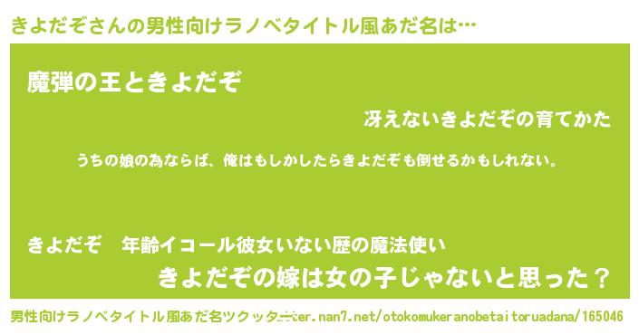 | 女子向けラノベタイトル風あだ名 | 『きよだぞ伯爵の花嫁』 |