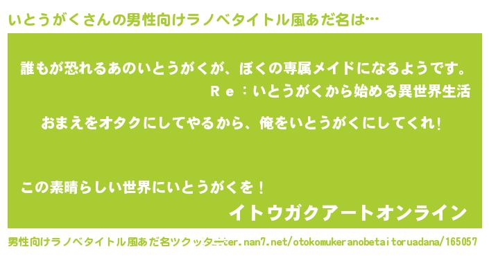 | 女子向けラノベタイトル風あだ名 | 『いとうがく夫妻のなれそめ』 |
