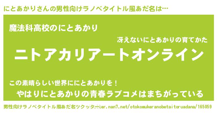 | 胡散臭い通販商品みたいなあだ名 | 『億万長者になれる水晶球…その名も「にとあかり」』 |