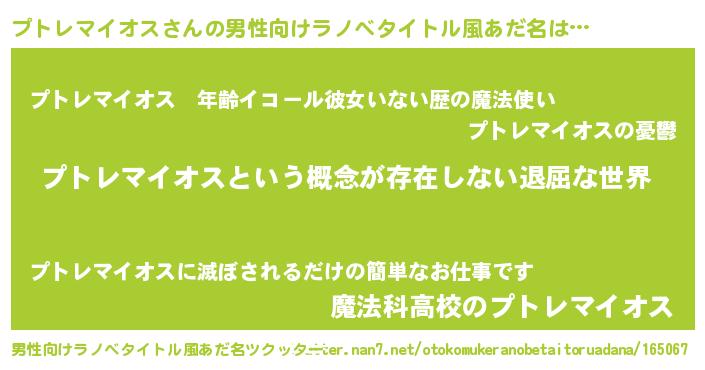 | ヘコむあだ名 | 『プトレマイオス(笑)』『プトっふぃ~』 |