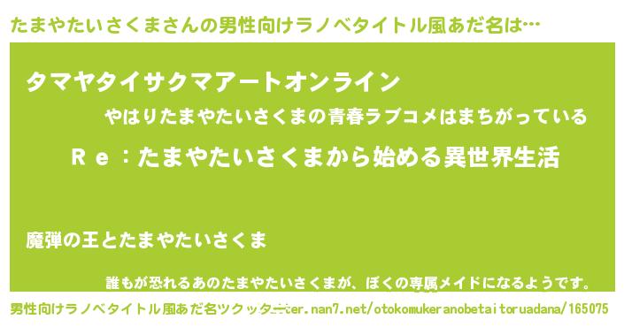 | 女子向けラノベタイトル風あだ名 | 『闇のたまやたいさくま』 |