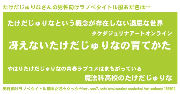 | 胡散臭い通販商品みたいなあだ名 | 『来世でも幸せになれる健康食品…その名も「たけだじゅりな」』 |