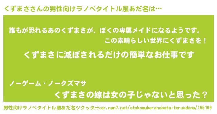 | 意味不明あだ名 | 『永久保存くずまさ』『自称くずまさ』 |