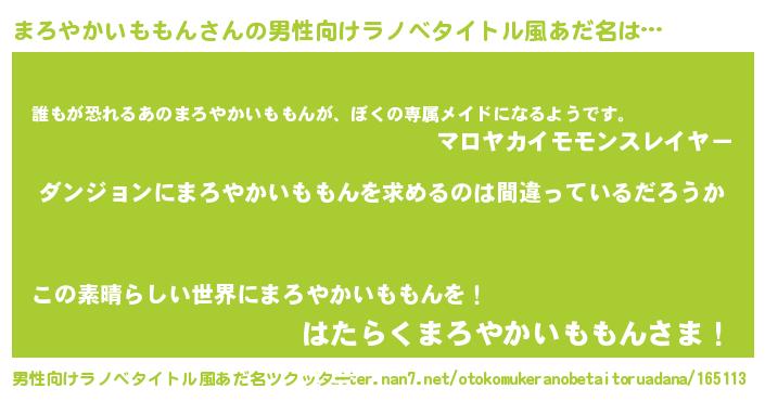 | 女子向けラノベタイトル風あだ名 | 『まろやかいももんは平凡を望む』 |
