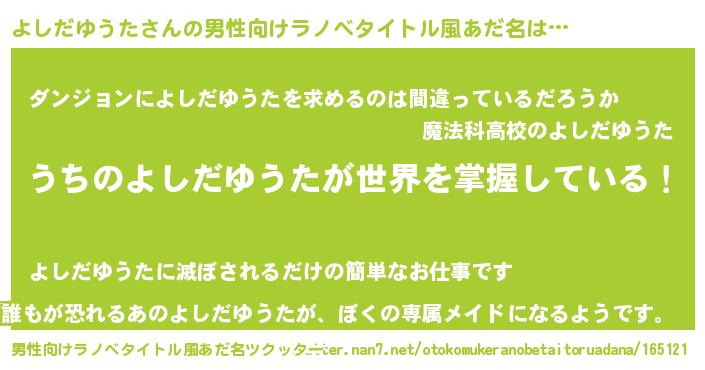 | 女子向けラノベタイトル風あだ名 | 『男装よしだゆうたの憂鬱な任務』 |