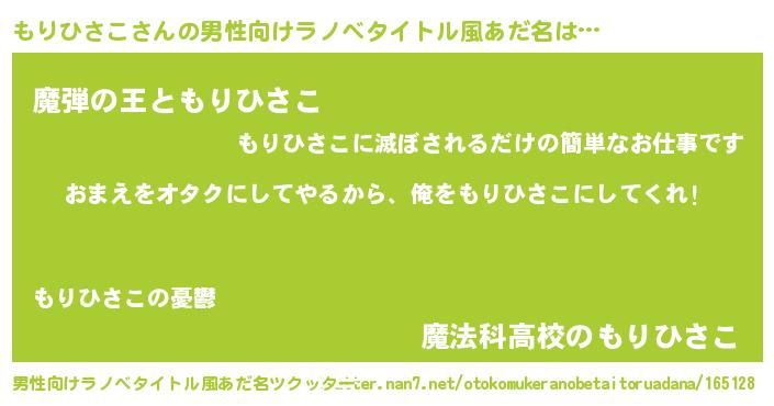 | ヒーロー風カッコイイあだ名 | 『正義の使者もりひさこ』『仮面モリダー』 |