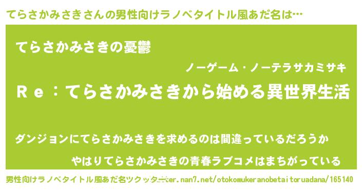 | 女子向けラノベタイトル風あだ名 | 『てらさかみさきストレイドッグス』 |