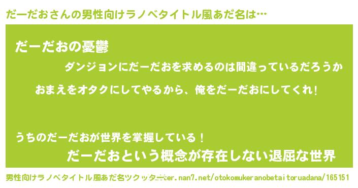 | 女子向けラノベタイトル風あだ名 | 『だーだお夫妻のなれそめ』 |