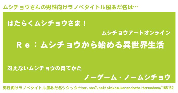 | 女子向けラノベタイトル風あだ名 | 『闇のムシチョウ』 |
