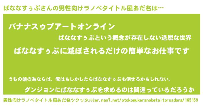 | 胡散臭い通販商品みたいなあだ名 | 『モテモテ間違いなしブレスレット…その名も「ばななすぅぷ」』 |