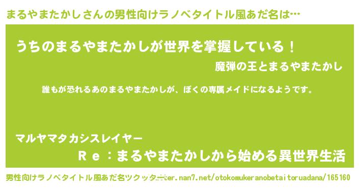 | 胡散臭い通販商品みたいなあだ名 | 『前代未聞の健康食品…その名も「まるやまたかし」』 |