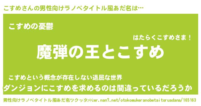 | 女子向けラノベタイトル風あだ名 | 『こすめが死なない童話 林檎のこすめの診療簿』 |