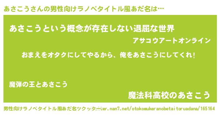 | 女子向けラノベタイトル風あだ名 | 『あさこう恋絵巻』 |