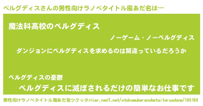 | 女子向けラノベタイトル風あだ名 | 『ベルグディスは平凡を望む』 |