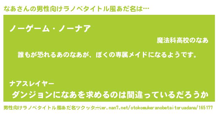 | 女子向けラノベタイトル風あだ名 | 『なあの契約王妃』『死神なあの再婚』 |