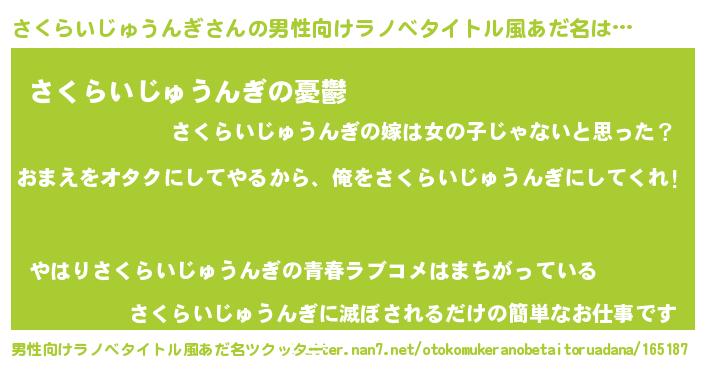| 女子向けラノベタイトル風あだ名 | 『さくらいじゅうんぎ夫妻のなれそめ』 |