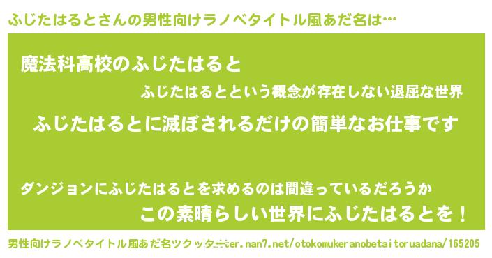 | 女子向けラノベタイトル風あだ名 | 『横柄ふじたはるとと宰相陛下』 |