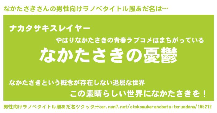 | 胡散臭い通販商品みたいなあだ名 | 『必ず成功する水晶球…その名も「なかたさき」』 |
