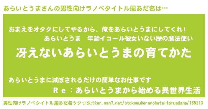 | ヒーロー風カッコイイあだ名 | 『愛の使者あらいとうま』『天弓騎士アラ』 |