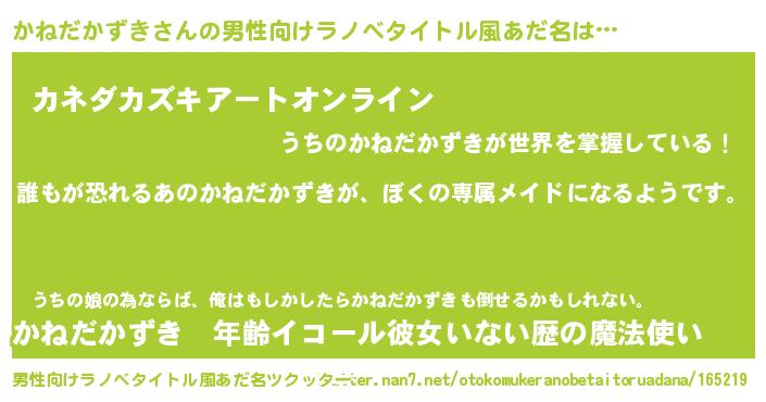 | 女子向けラノベタイトル風あだ名 | 『かねだかずきの契約王妃』 |