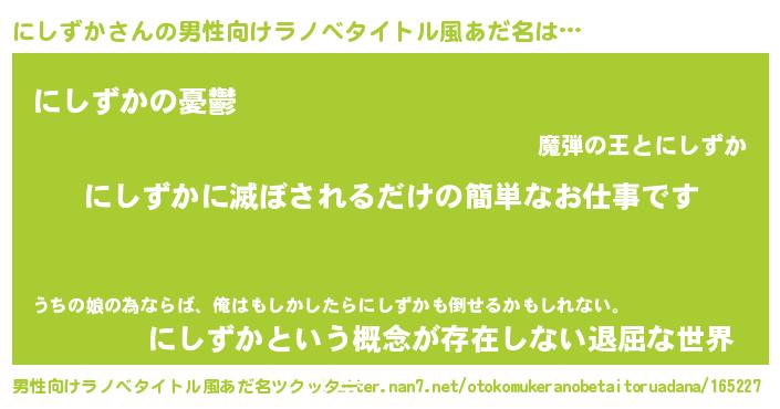| 胡散臭い通販商品みたいなあだ名 | 『億万長者になれる霊験あらたかなお札…その名も「にしずか」』 |