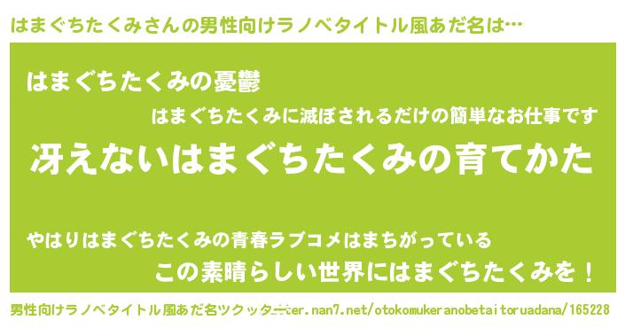 | 欧米人風あだ名 | 『はまぐちたくみ・ステッグマイヤー』 |