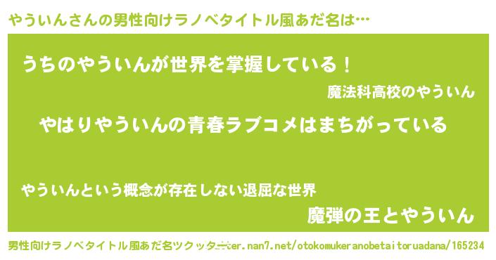 | ヒーロー風カッコイイあだ名 | 『ウルトラやういんマン』『仮面ヤウダー』 |
