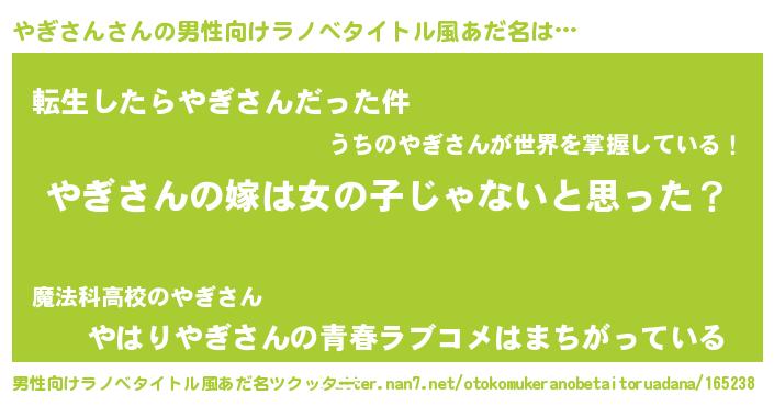 | 意味不明あだ名 | 『とにかく怪しいやぎさん』 |