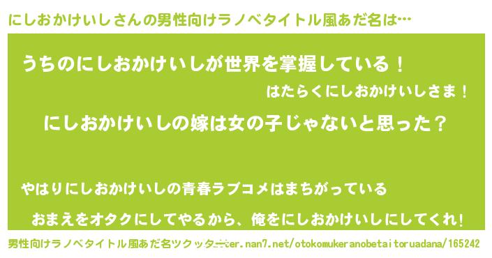 | 女子向けラノベタイトル風あだ名 | 『にしおかけいし様がみてる』 |