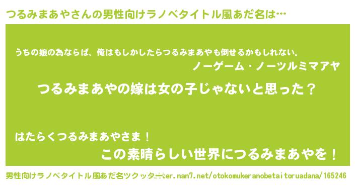 | 女子向けラノベタイトル風あだ名 | 『つるみまあや様がみてる』 |