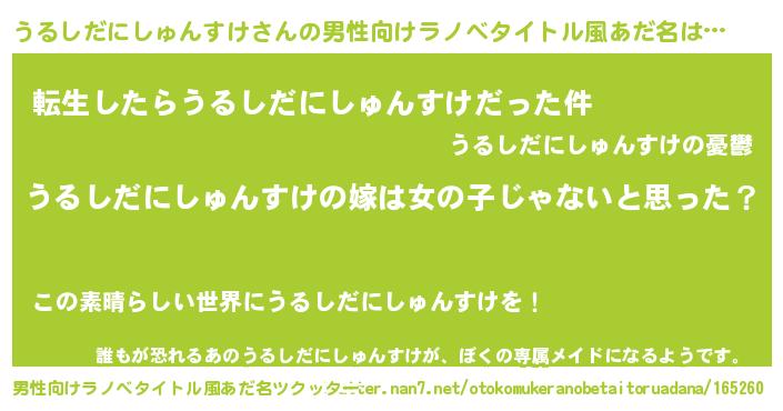 | 欧米人風あだ名 | 『ウサインうるしだにしゅんすけ』 |