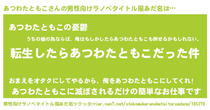 | 肩書あだ名 | 『あつわたともこ大佐』 |