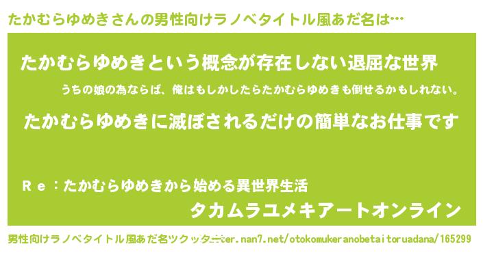 | 意味不明あだ名 | 『永久保存たかむらゆめき』 |