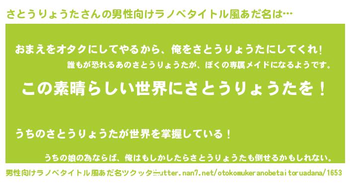 | 女子向けラノベタイトル風あだ名 | 『悪役さとうりょうたに転生したようですが、知った事ではありません』 |