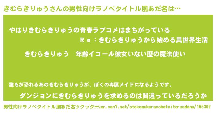 きむらきりゅうさんの男性向けラノベタイトル風あだ名をツクッター!