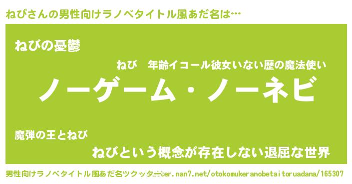 | 女子向けラノベタイトル風あだ名 | 『ねび恋絵巻』『ねび姫と円卓の騎士』 |