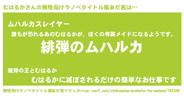 | 恥ずかしいあだ名 | 『むはちん』『プリティーむはるか』 |
