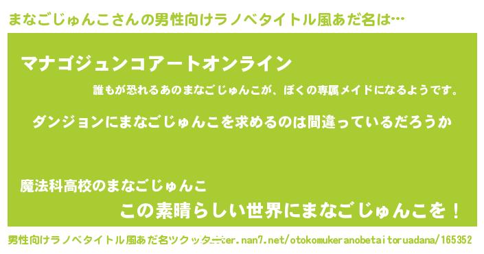 | 女子向けラノベタイトル風あだ名 | 『まなごじゅんこは平凡を望む』 |