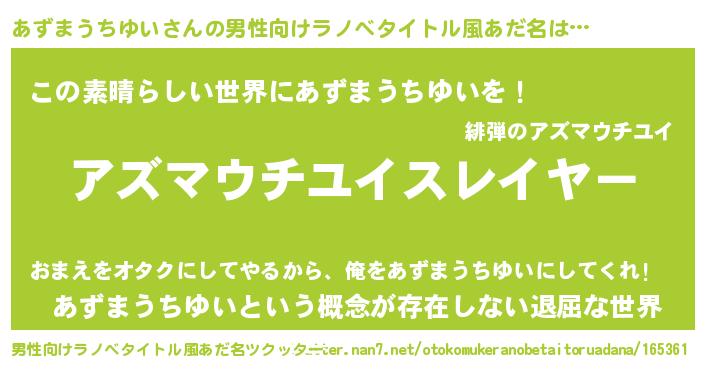 | ヘコむあだ名 | 『あずまうちゆい(小並感)』『あずっふぃ~』 |